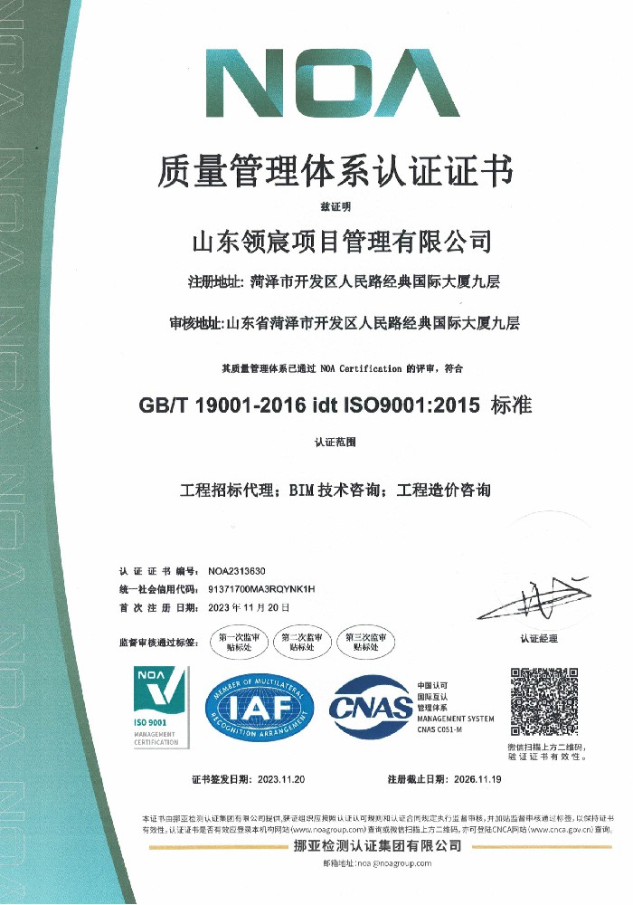山東領宸項目管理有限公司是一家以全過程工程咨詢為核心的咨詢服務公司,本公司現具備工程造價咨詢乙級資質,房屋建筑工程、市政工程監理乙級資質和招標代理備案。公司擁有專業的工作團隊及豐富的行業經驗,在行業領域內具有雄厚的實力,企業管理人員擁有行業20年以上的資深行業工作經驗。公司現有專業技術人員50余人,具有一級注冊造價工程師、注冊監理工程師、一級注冊建造師、二級注冊建造師、招標師等工程類國家注冊執業資格證書人員合計30余人以及高級工程師3人,持證上崗率達到90%......